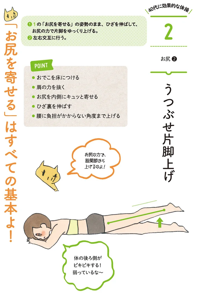 大臀筋と股関節を鍛えてプリ尻に!お尻を寄せて行う「うつぶせ片脚上げ」 あぶら身をごっそり落とすきくち体操 7- レタスクラブ。