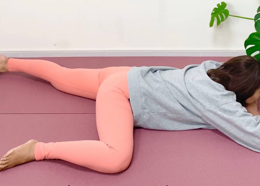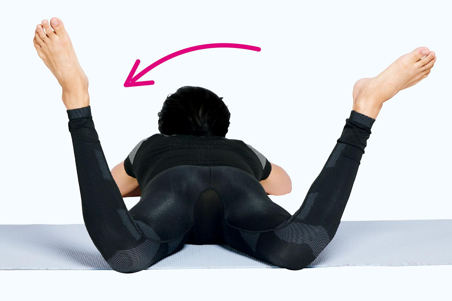 うつぶせ足ふり実践編足をワイパーのように振って背骨や股関節を整えるカラダネ - うつ伏せ 足 ピン。