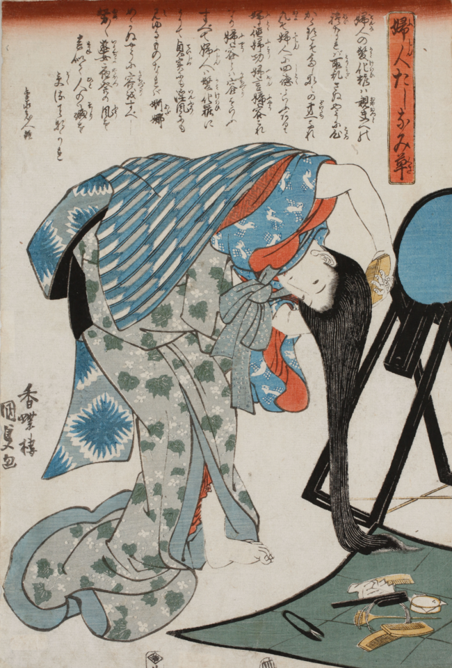 伝統化粧の完成期江戸時代13 日本髪の手入れ方法<洗髪>ポーラ文化研究所。