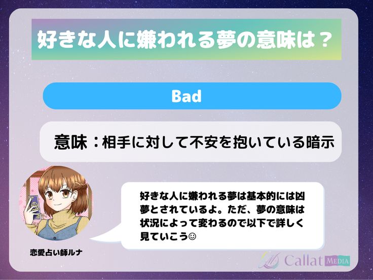 夢占い 「好きな人に嫌われる夢」の意味は? シーン別暗示19選「マイナビウーマン」。