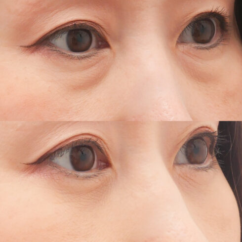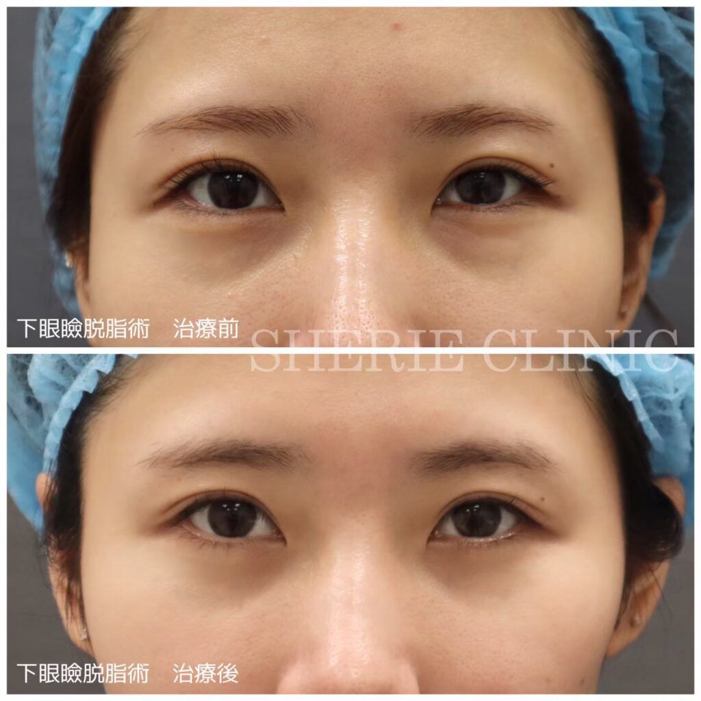 お痛みや腫れ、内出血を最小限に♪目の下のふくらみ取り処置前と1か月後の症例です 30代女性美容整形クリニックA CLINIC 公式。