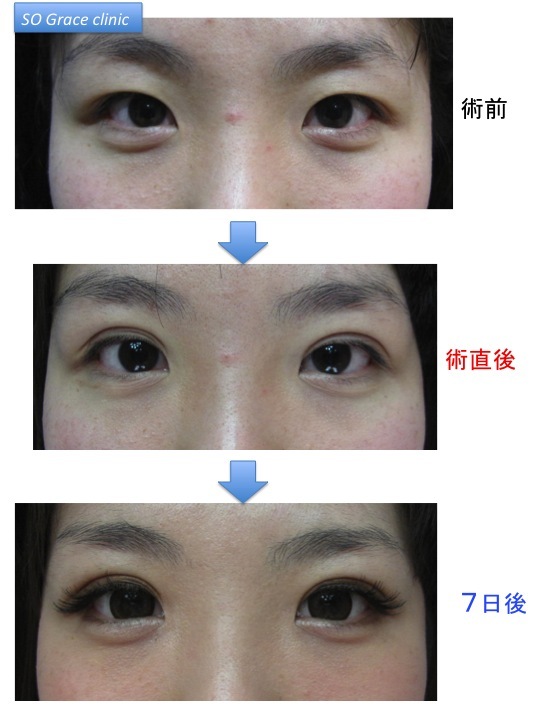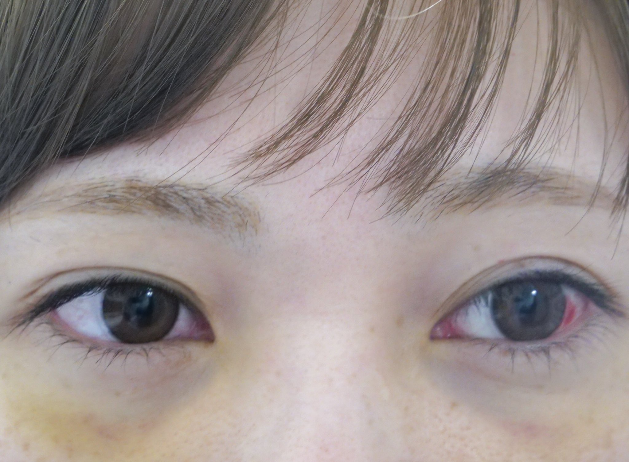 術直後でも、腫れ、内出血はありません。痛みもなく、ばれずに最高の仕上がり。埋没二重まぶた術。SO.グレイスクリニック。