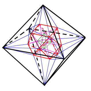 あくごう丸の会話 : 以下は正八胞体の展開図と組み立て図です。 正八胞体は四次元立体と呼ぶ事ができる立体で、実際に神秘主義者グラジェフが信者に与えた問いとしても有名です。ヒントは固定観念を取っ払うくらいでしょうか。ま、頑張ってやってみましょう!好きで。