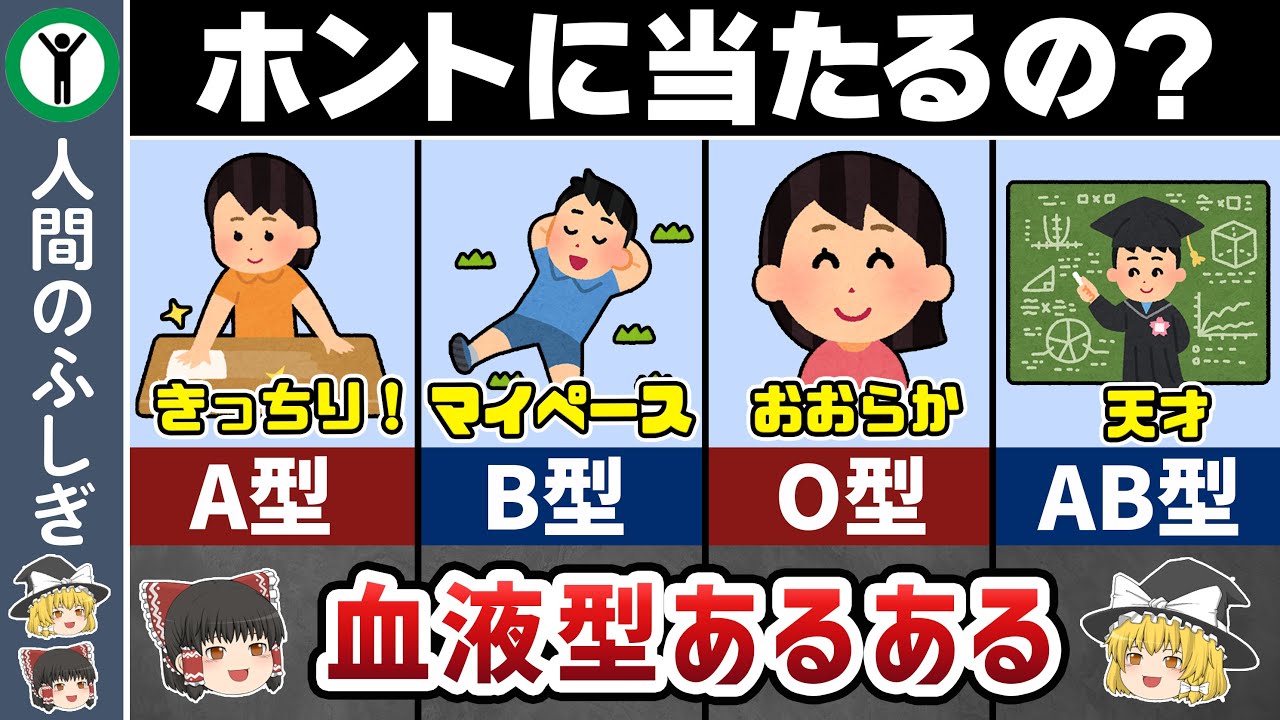 血液型あるある 科学者が1万人を調べて分かった衝撃的な事実とは? ゆっくり解説- YouTube。
