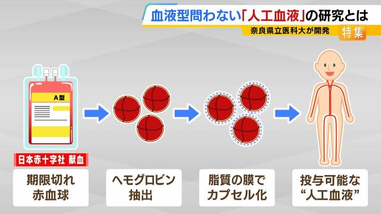 どんな患者さんでも、血液型も関係なく入れられる」A・B・O・AB型を問わない『人工血液』の開発に成功 一体どんなもの?奈良県立医大特集MBSニュース。