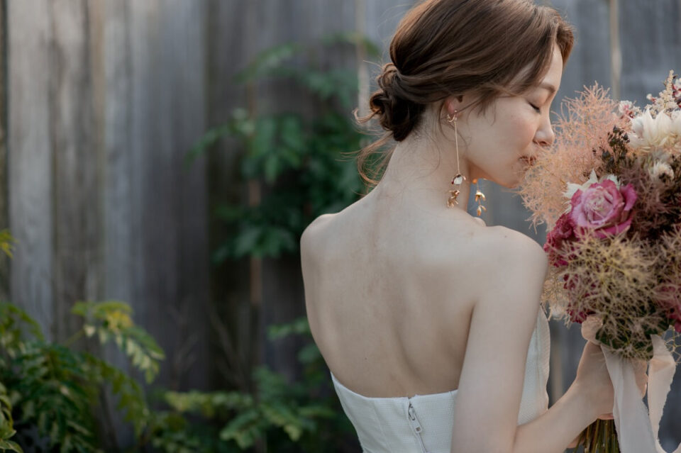 洋装ヘアスタイルデコルテフォトグラフィー前撮り・フォトウェディング。