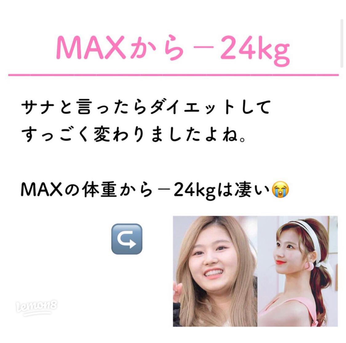私は昔から韓国アイドルが大好きで永遠の憧れは TWICEのサナちゃん🥹✨️ 可愛さと美しさを兼ね揃えてるのはもちろんメリハリのある女性らしいスタイルがめちゃくちゃ理想🥹 サナちゃんを待受にして自分のモチベーションを高めています!そんな今、73kgから48kg体型を。