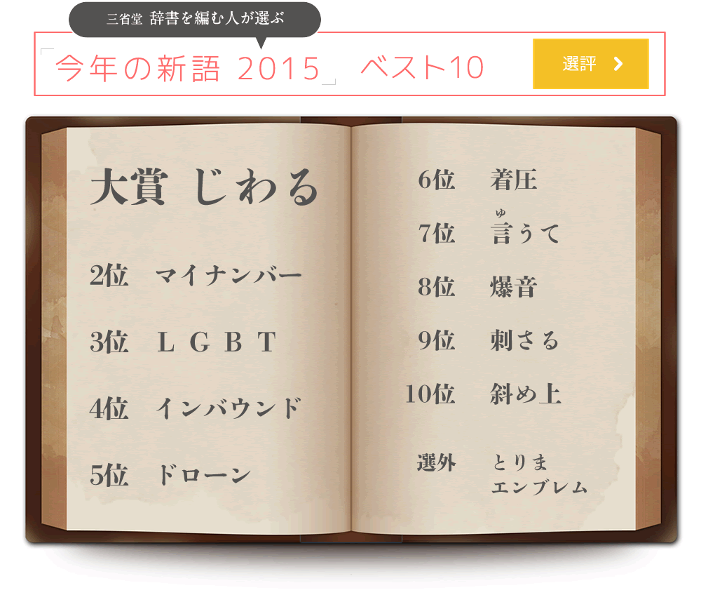 2015年の選考結果三省堂 辞書を編む人が選ぶ「今年の新語2016」。
