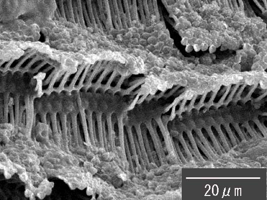 文ちゃんのタイニーカフェテラス ニクバエの脚<走査電子顕微鏡、SEM>。