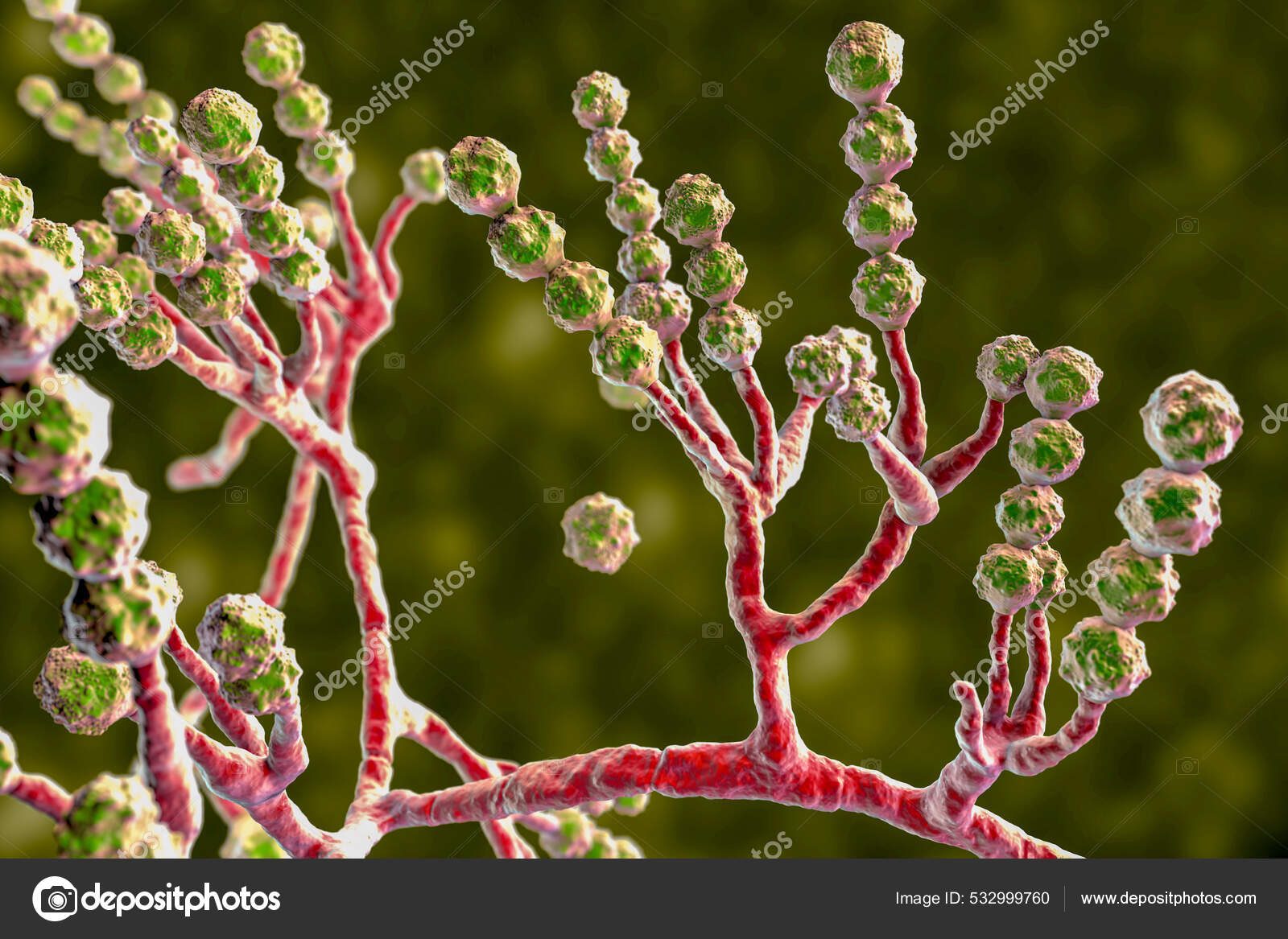 顕微鏡的真菌Scopulariopsis Brevicaulis 3Dイラスト 爪に感染する真菌 皮下および侵襲性感染症を引き起こします 心内膜炎副鼻腔炎 普及感染症 — ストック写真 © katerynakon532999760。