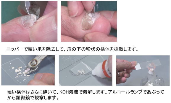 爪白癬の検査町野皮ふ科坂戸市にっさい花みず木の皮膚科。
