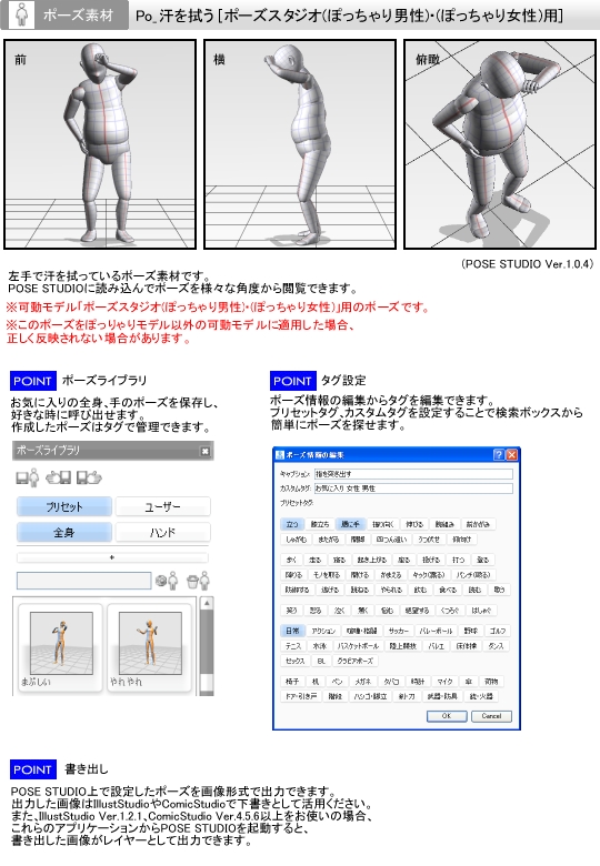 Po_汗を拭う ポーズ- CLIP STUDIO ASSETS。