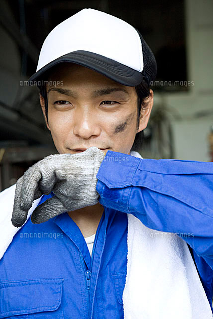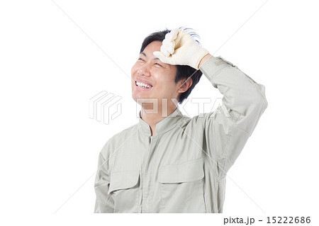 汗を拭う笑顔の男性 作業着の写真素材15222686- PIXTA。