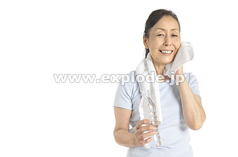 タオルで汗を拭くシニア女性 - MG009069.jpg - 写真素材。