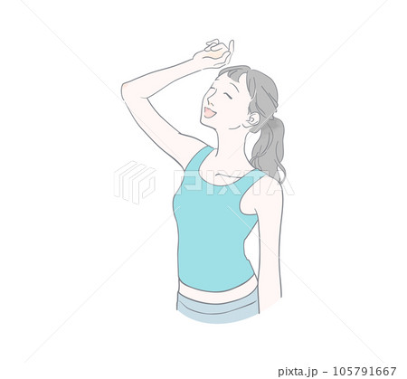 空を仰ぐ、眩しい、光を避ける、汗をぬぐうポーズの笑顔の女性のイラスト素材105791667- PIXTA。