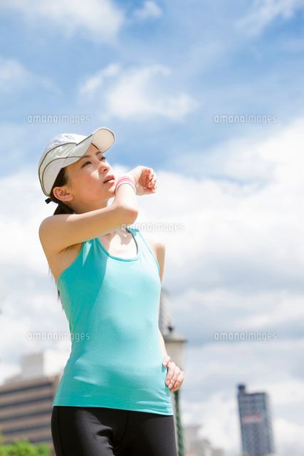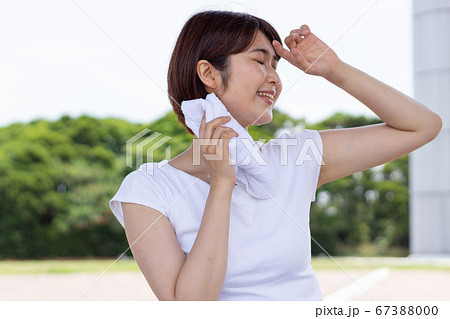 汗を拭く女性の写真素材67388000- PIXTA。