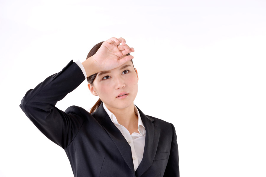 無料写真手で汗を拭う女性会社員パブリックドメインQ:著作権フリー画像素材集。