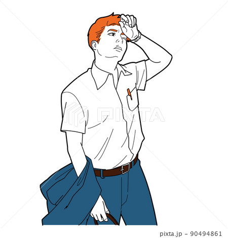 汗を拭うビジネスマンのイラスト素材90494861- PIXTA。