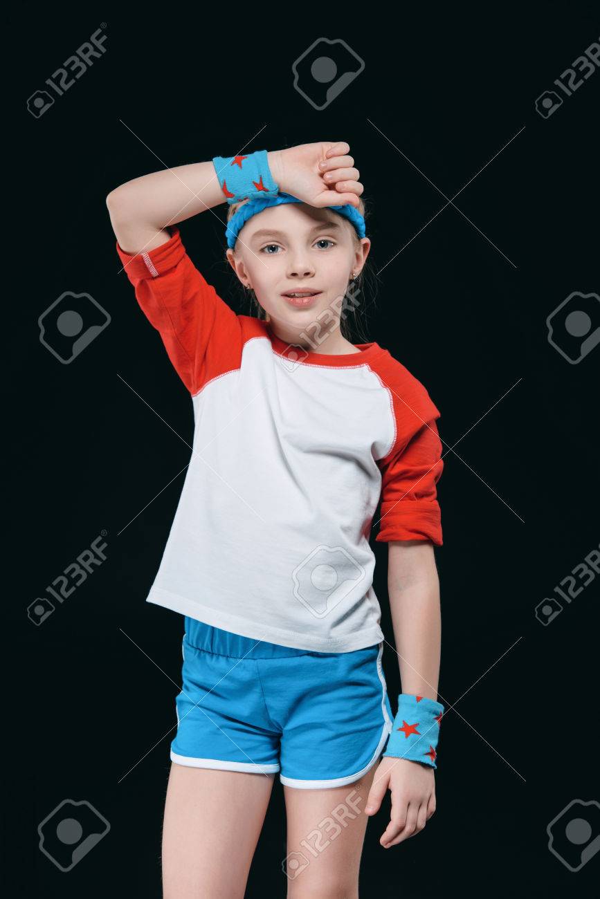 額から汗を拭くスポーツウェアで疲れている少女の写真素材・画像素材 Image 78861555。