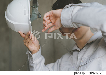 汗を拭う作業員の写真素材66243395- PIXTA。