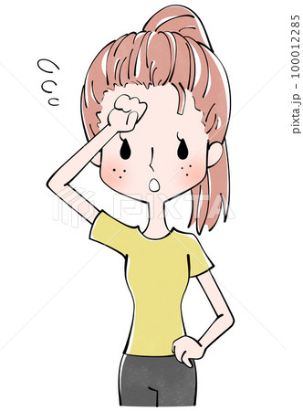 額の汗をぬぐう女性のイラストのイラスト素材100012285- PIXTA。