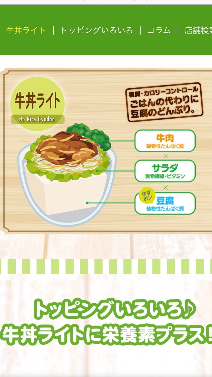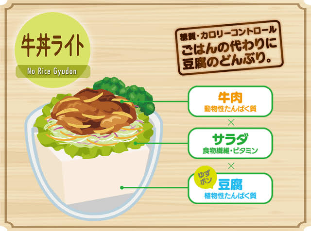 糖質制限の強い味方、牛丼ライトに7種のトッピングが仲間入り。