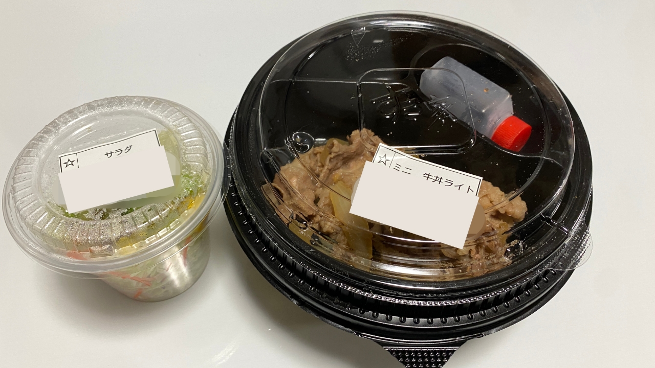 すき家で牛丼ライト お肉ミニ +サラダセットという超ヘルシーな注文をしてみました - こせたん宅配弁当。