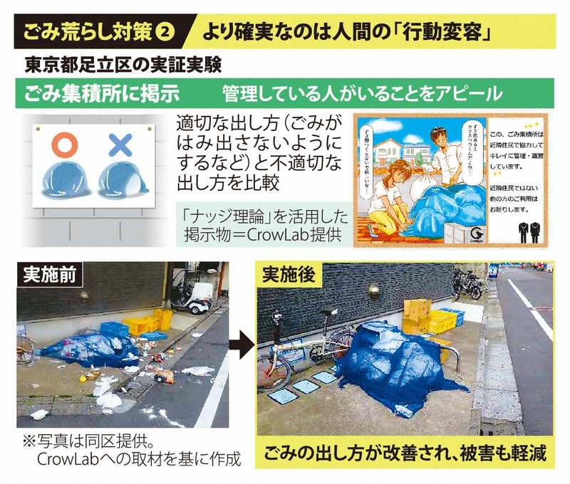 ゴミ置き場カラス対策ネット使用呼びかけ イラスト付 プレート看板 W450×H300 エコユニボードSP-SMD595-45x30U-スタンド看板通販のサインモール。