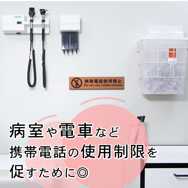 サインプレート携帯電話使用禁止ブロンズ 銅板風 ステッカー プレート おしゃれ 注意 案内 注意書き 病院 廊下 待合室 禁止区域。