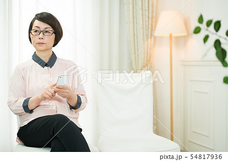 病院の待合室でスマホを見る若い女性の写真素材106370049- PIXTA。