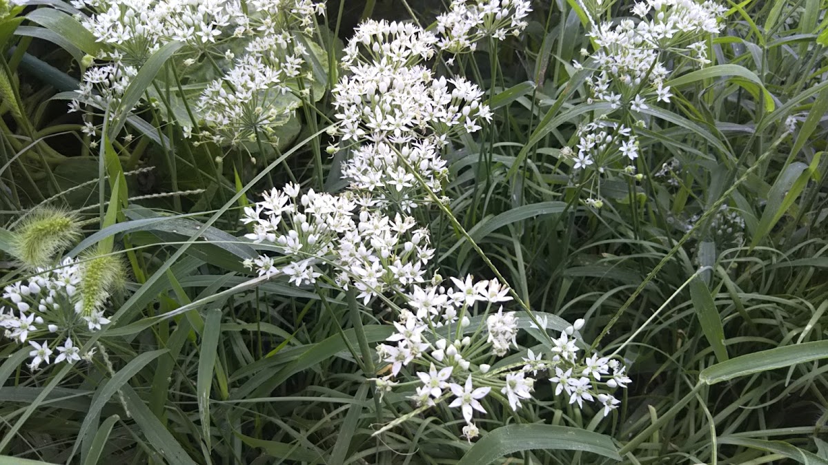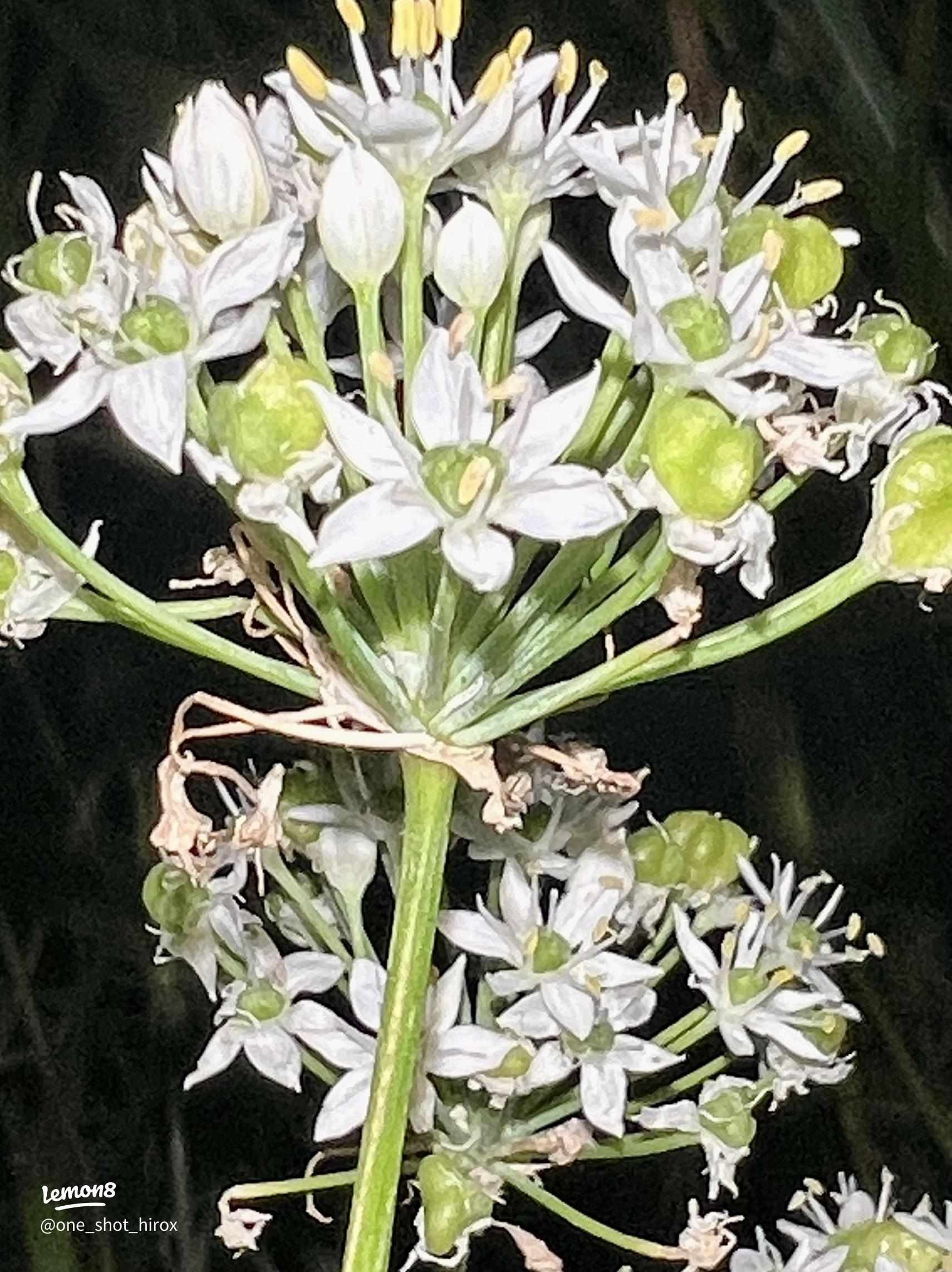 韮 ニラ 田んぼの土手では、白い花が咲き始めてました。 学名: Allium tuberosum、キジカクシ目ヒガンバナ科ネギ属の多年草。中国原産。