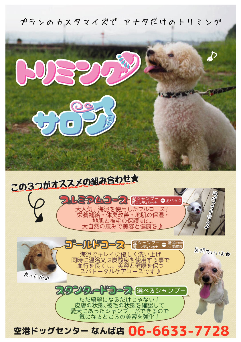 関西のペットショップなら空港ドッグセンターなんば店トリミング料金表。