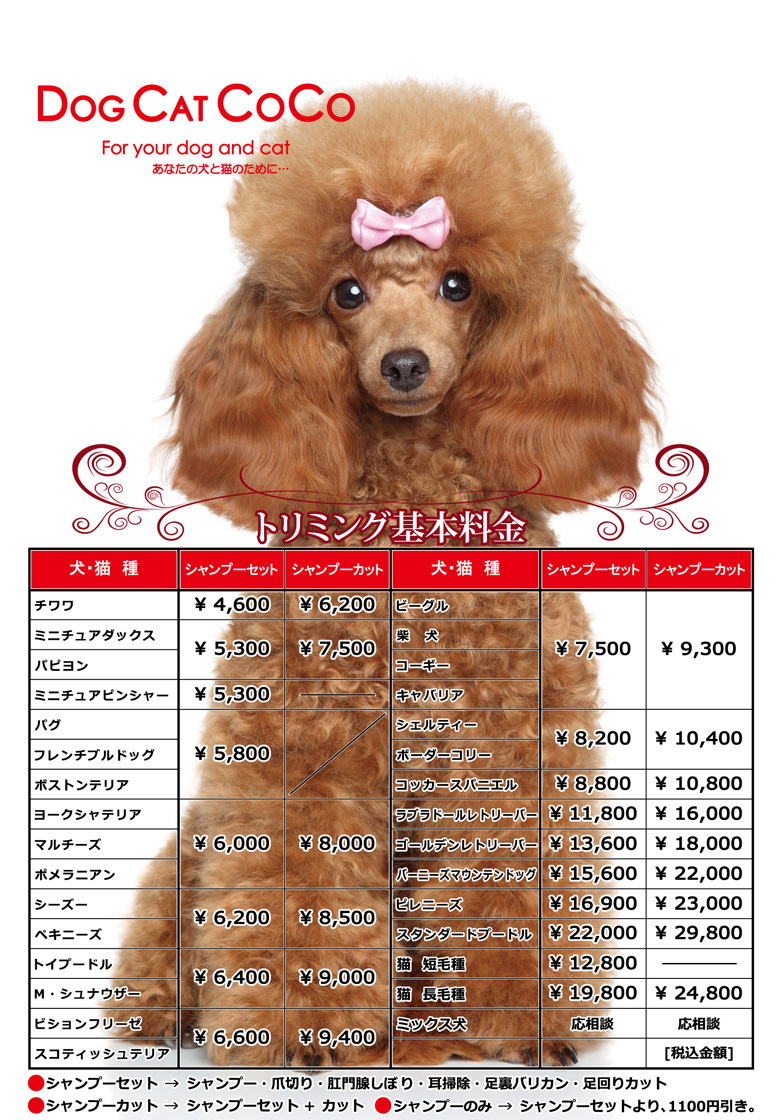 プードル トリミング料金表 西所沢の犬・猫・小動物の病気なら星の宮動物病院。