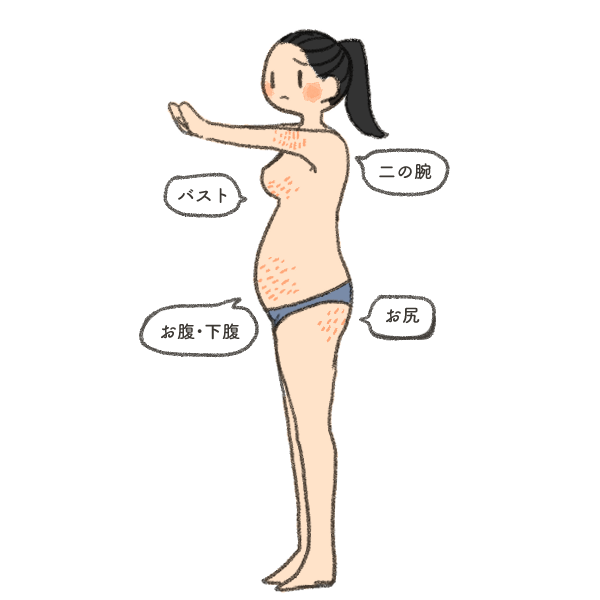 妊娠線って、おなかだけじゃないの?」ホルモンバランスの変化で肌が荒れるって本当?たまひよ。