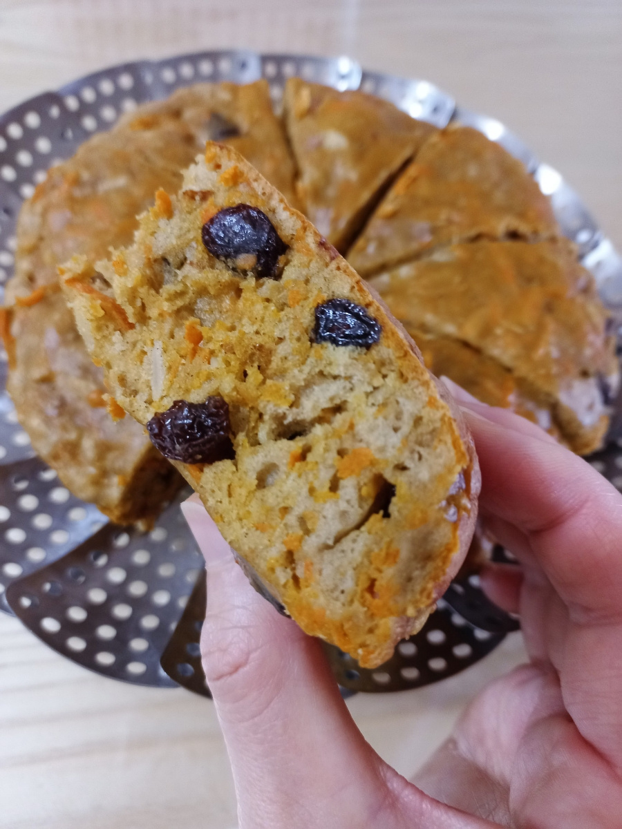 ゆる四毒抜きレシピ 米粉キャロットケーキの作り方☆にんじんまるごと一本で栄養たっぷり・米粉パンより簡単!小麦断ちを目指す方にも♡ グルテンフリー シュガーフリーオイルフリー 四毒抜きおやつ。