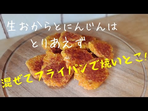 ダイエットレシピ にんじんおからクッキー!まぜてフライパンで焼くだけ!k小麦粉無し!オーブン無し!卵無し!バター無し!にんじん丸々1本!栄養満点!どんだけ食べても罪悪感無し。