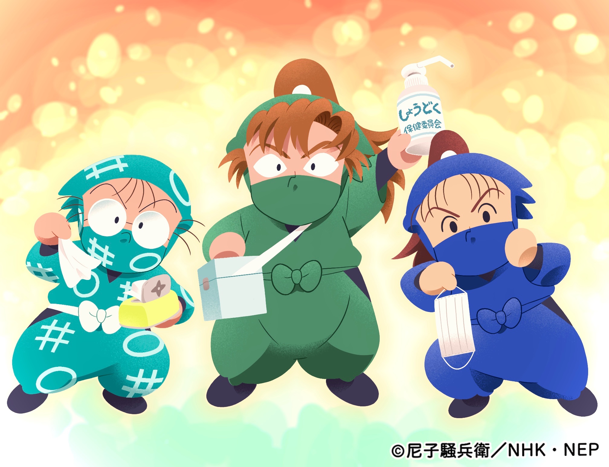 忍たま乱太郎 保健委員会 株 亜細亜堂 on X: "「しまった!消毒するの忘れてた😵💫」 そんなとき、保健委員会・六年は組の善法寺伊作、二年い組の川西左近、一年は組の猪名寺乱太郎が覆面姿で出動⁉️ 用意周到な様子に保健委員会としての気合いを感じます🔥 手洗い。