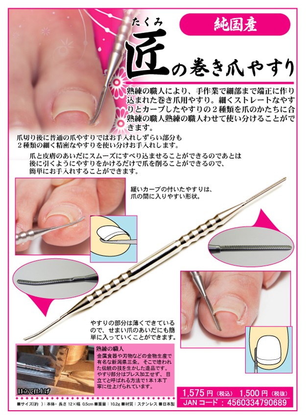 匠の巻き爪やすり 日本製 巻きづめ 巻き爪用爪やすり 巻き爪用ヤスリ 巻爪やすり 巻き爪ヤスリ メール便 : スマイルキューブ - 通販 -Yahoo!ショッピング。