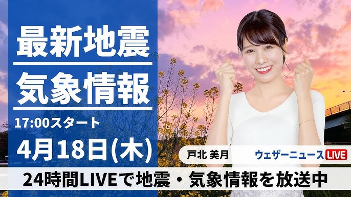 LIVE 最新気象・地震情報 2024年4月18日 木関東はにわか雨に注意晴れる地域も黄砂が飛来 ウェザーニュースLiVEイブニング・戸北美月。
