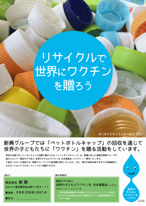 ペットボトルキャップをワクチンに岡山の産業廃棄物処分なら藤クリーン。