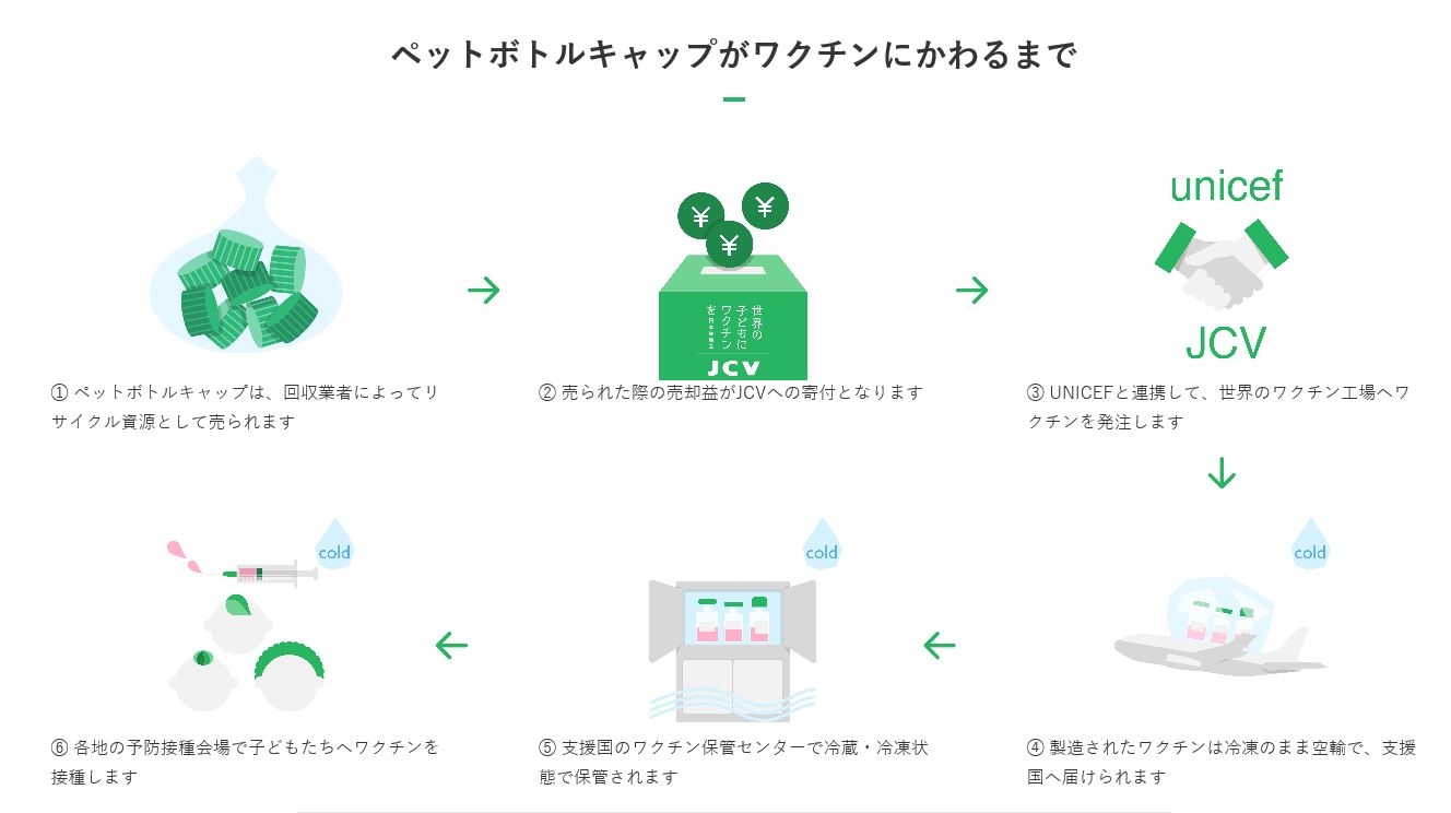 キャップ回収による支援はワクチン年間150万人分! SDGsへの関心の高まりに合わせて年々拡大するペットボトルキャップ回収活動による子どもワクチン支援認定NPO法人 世界の子どもにワクチンを 日本委員会 JCV のプレスリリース。