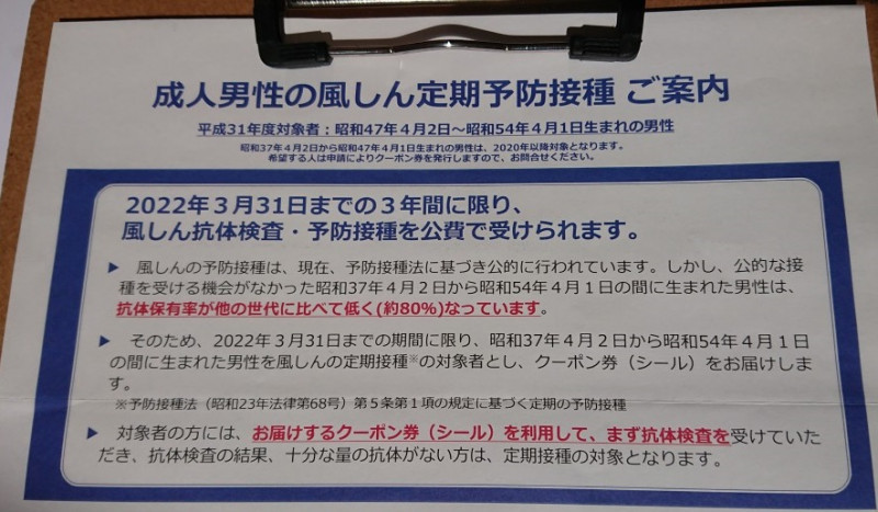 風しんの追加的対策 昭和37年4月2日から昭和54年4月1日生まれまでの男性習志野市ホームページ。
