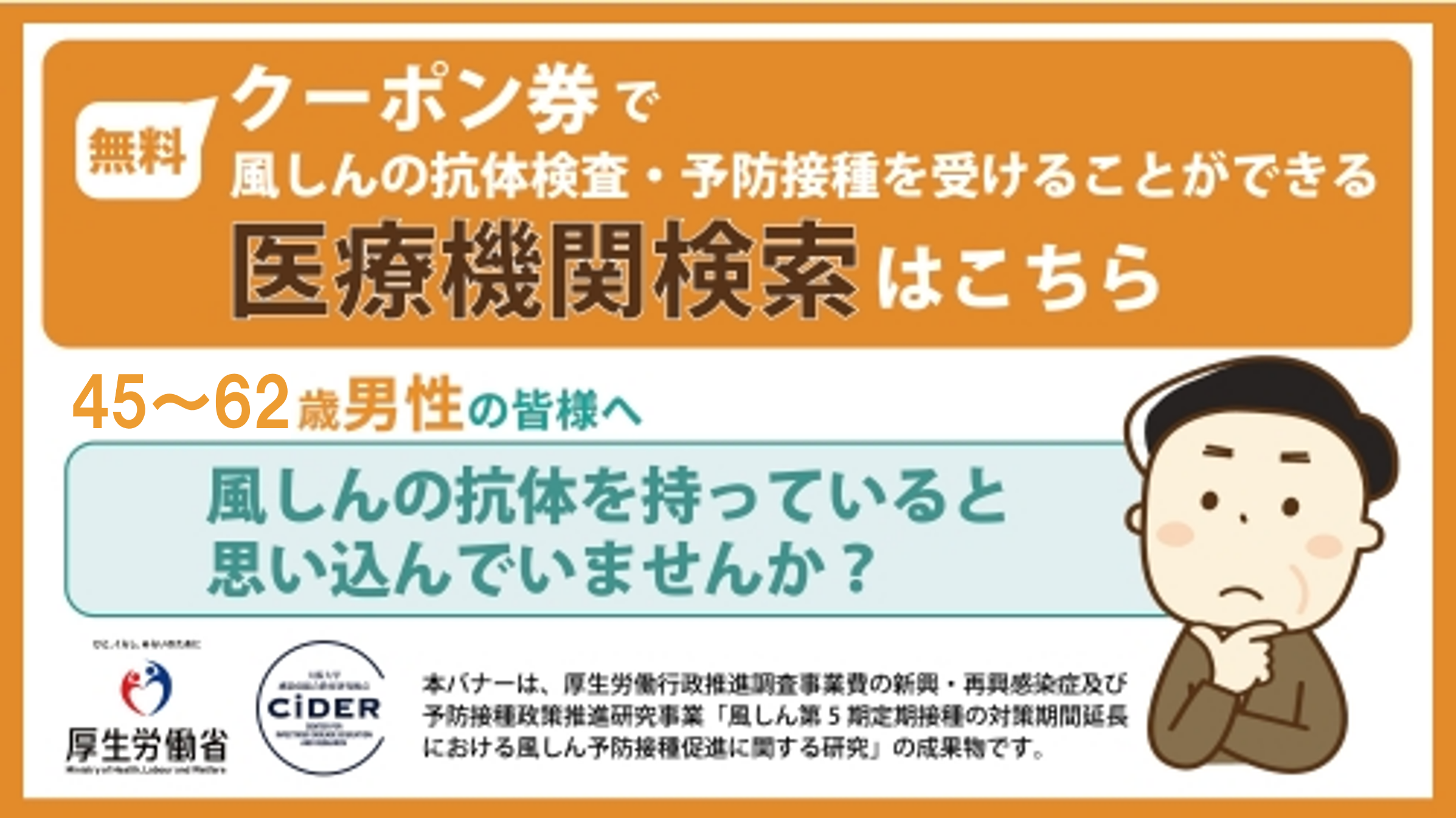 令和6年度 45~62歳になる男性の皆様へ 風しん抗体検査・予防接種について 北谷町公式ホームページ。