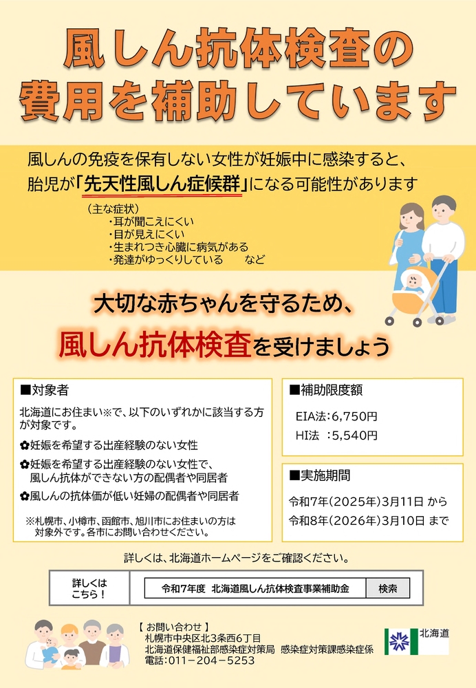 風しん抗体検査費用の助成について北海道石狩市公式ホームページ。