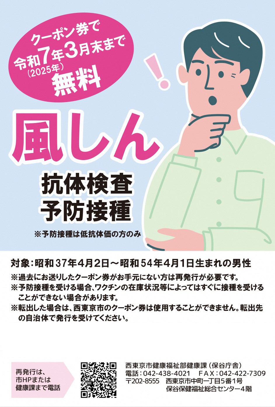 東京都西東京市 on X: "\令和7年3月31日まで風しん抗体検査・予防接種クーポン券を使用し、無料で抗体検査・予防接種が受けられます。 予防接種は、抗体検査の結果が低い方のみです。 ※過去にお送りしたクーポン券がお手元にない方は再発行が必要です。西。
