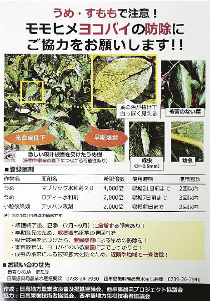 モモヒメヨコバイ防除へ 梅の害虫、和歌山県がチラシで協力呼びかけ:紀伊民報AGARA和歌山県のニュースサイト。