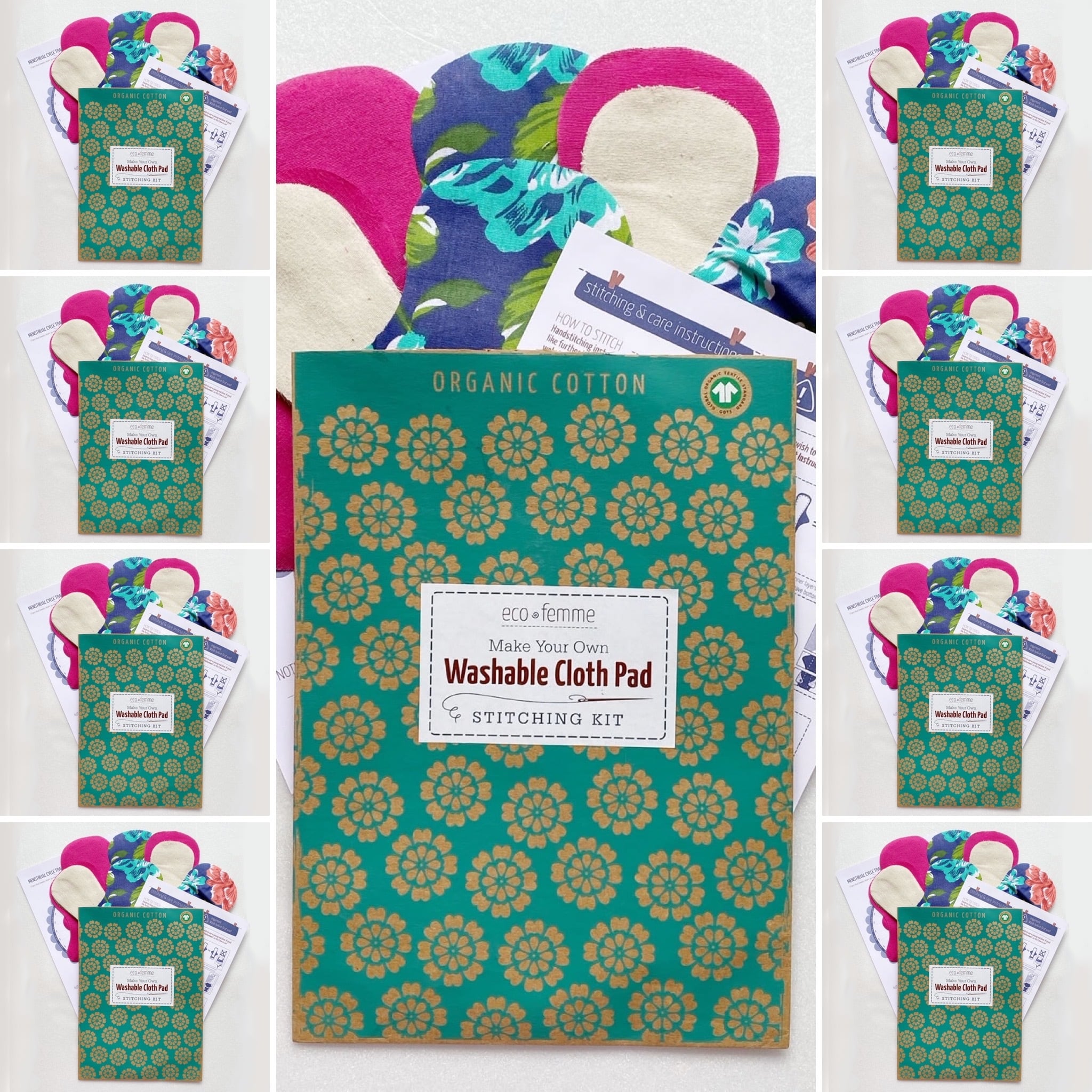 オンラインワークショップ向け割引商品 インド フェアトレード 送料込 布ナプキンが3個作れる針と糸付き手作りキット10個セット「Eco Femme」3 Cloth Pads Stitching Kit 10 pieces for online workshopインドの布ナプキンのお店MAKHANA。