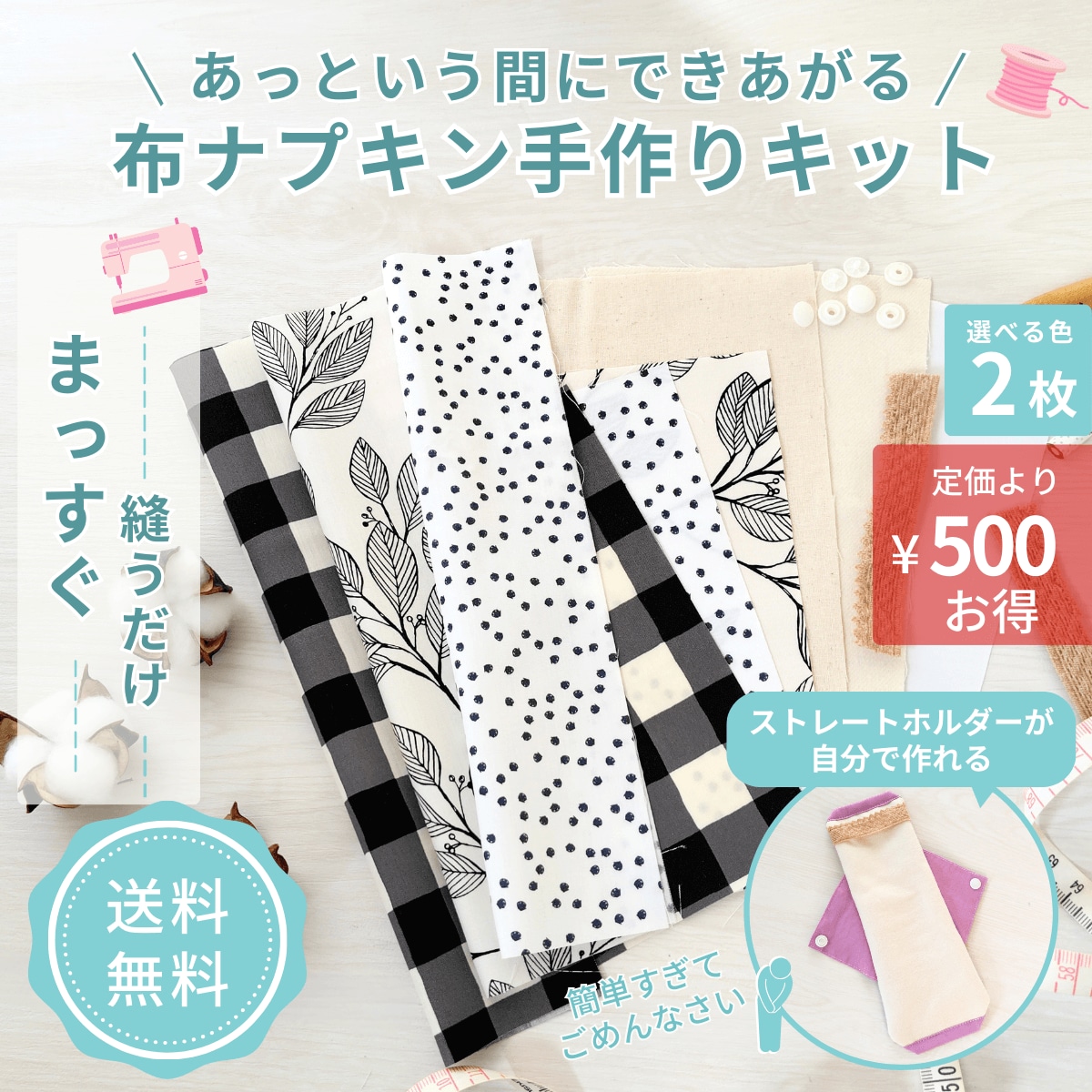 針と糸付き手作りキットで布ナプキンを作ろうインドの布ナプキンのお店 MAKHANA。