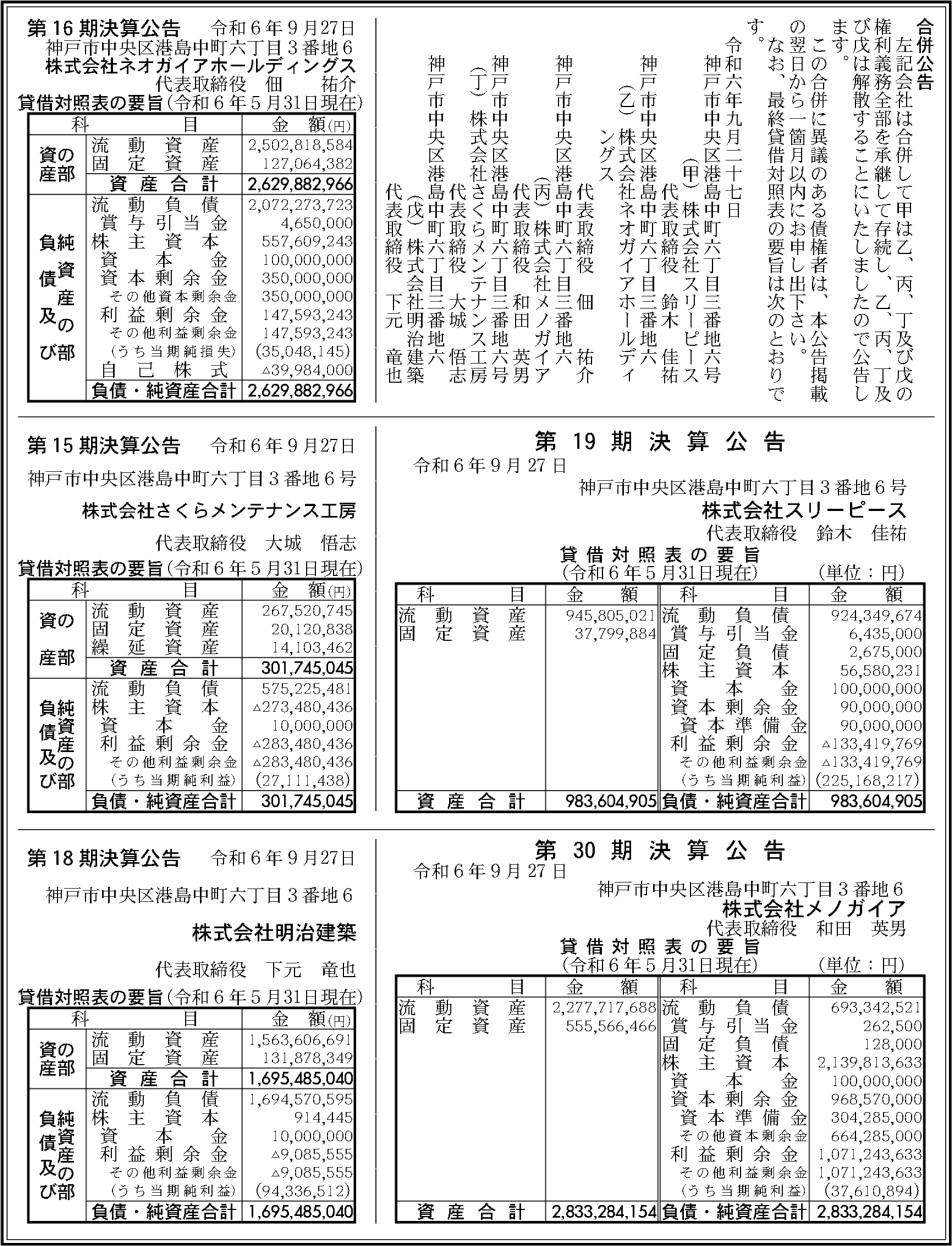 株式会社ネオガイアホールディングス 第16期決算公告官報決算データベース。