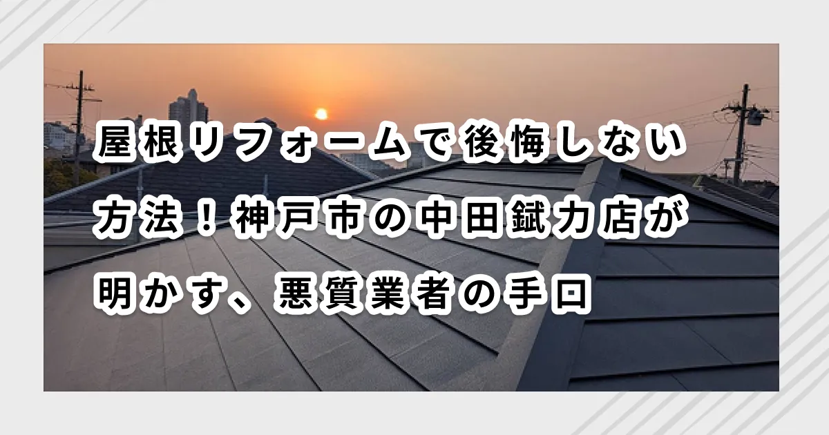 屋根リフォームで後悔しない方法!神戸市の中田錻力店が明かす、悪質業者の手口やねプロ STOP!リフォーム詐欺。